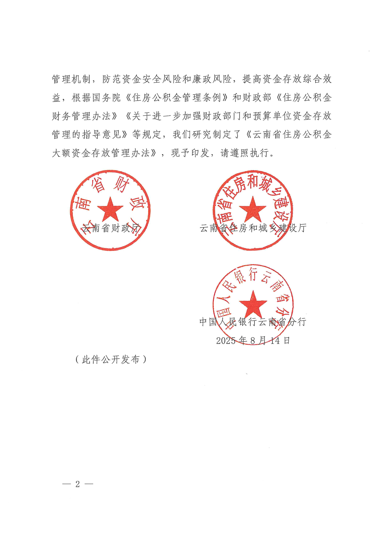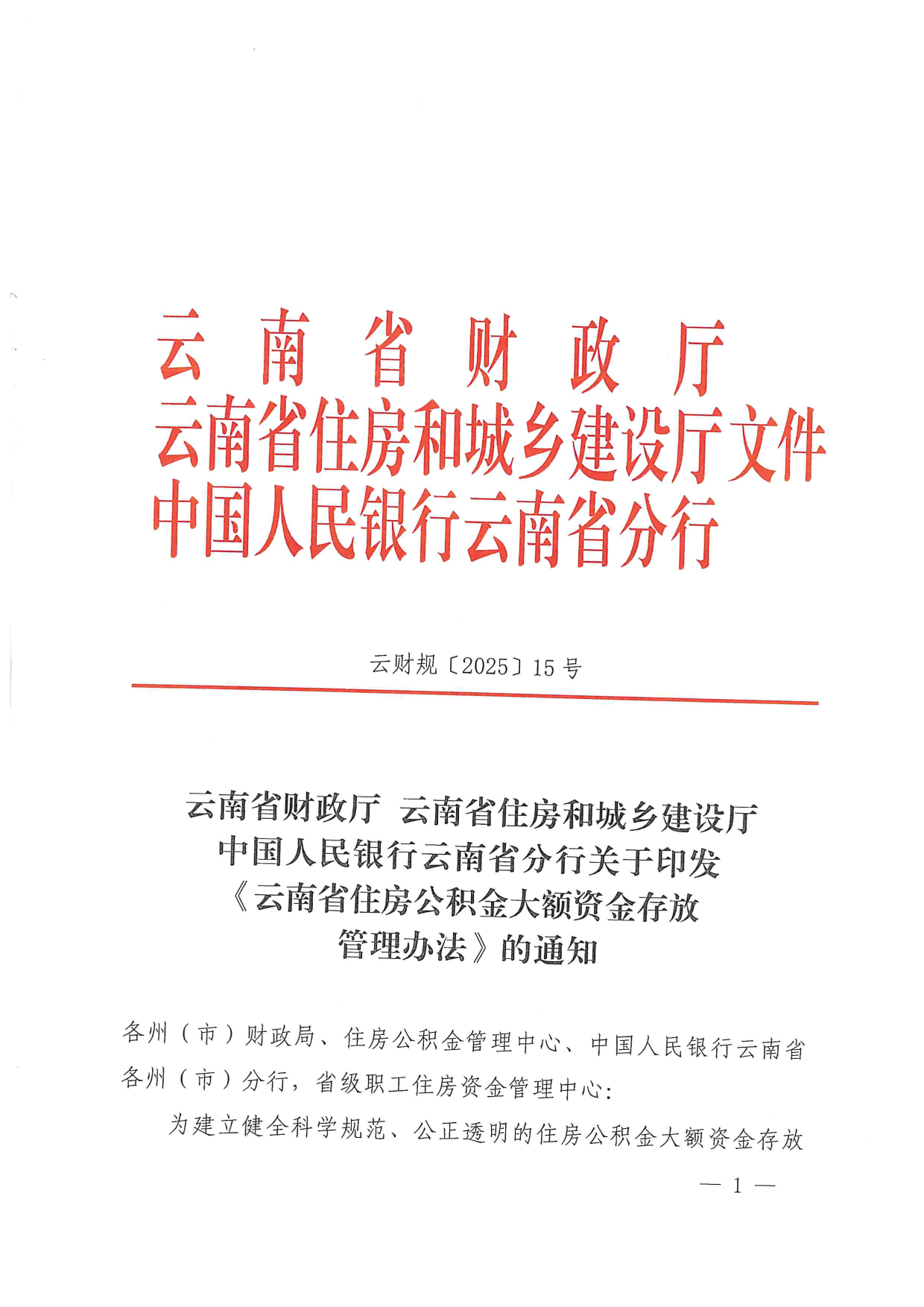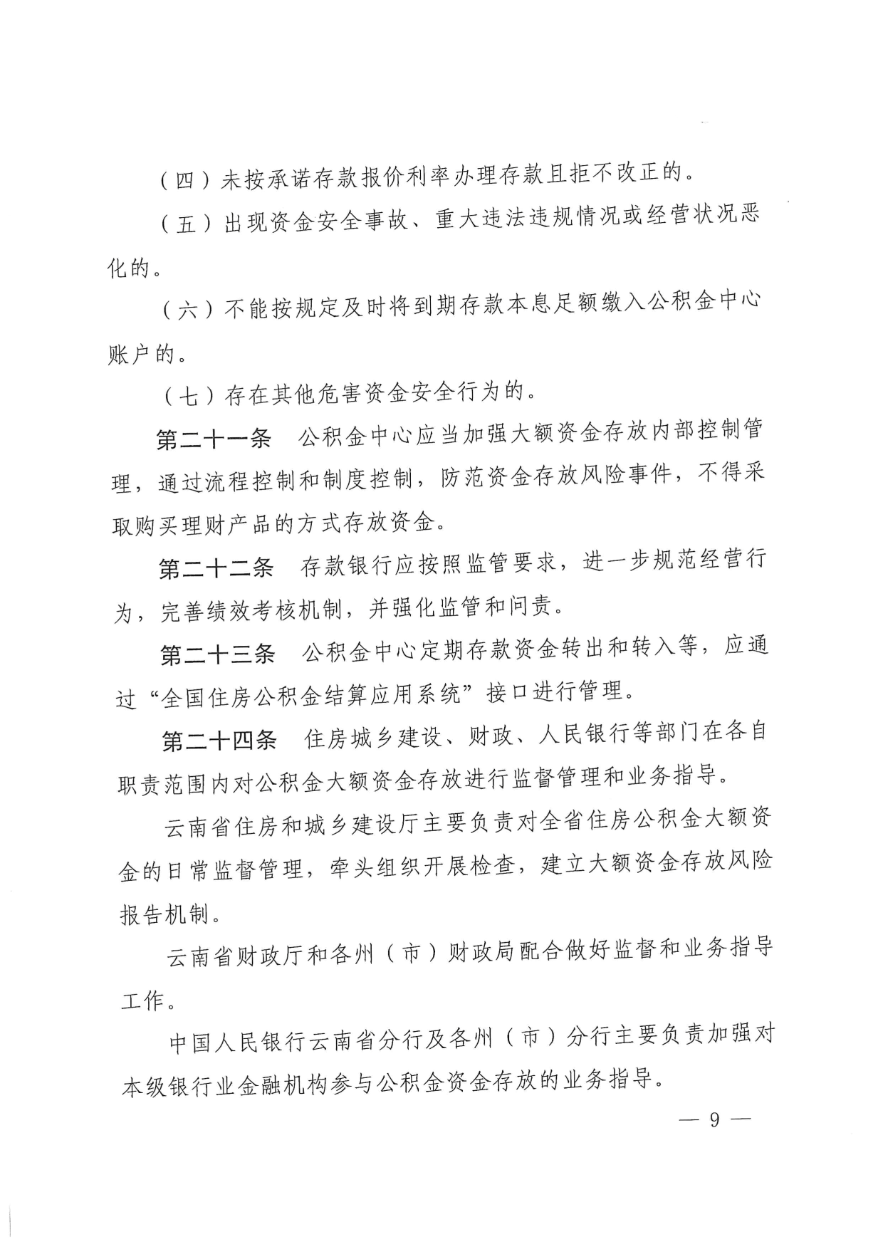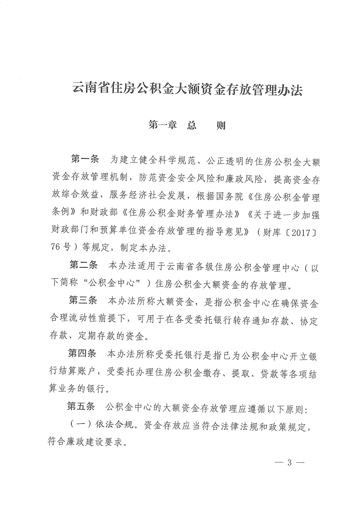 关于印发《云南省住房公积金大额资金存放管理办法》的通知