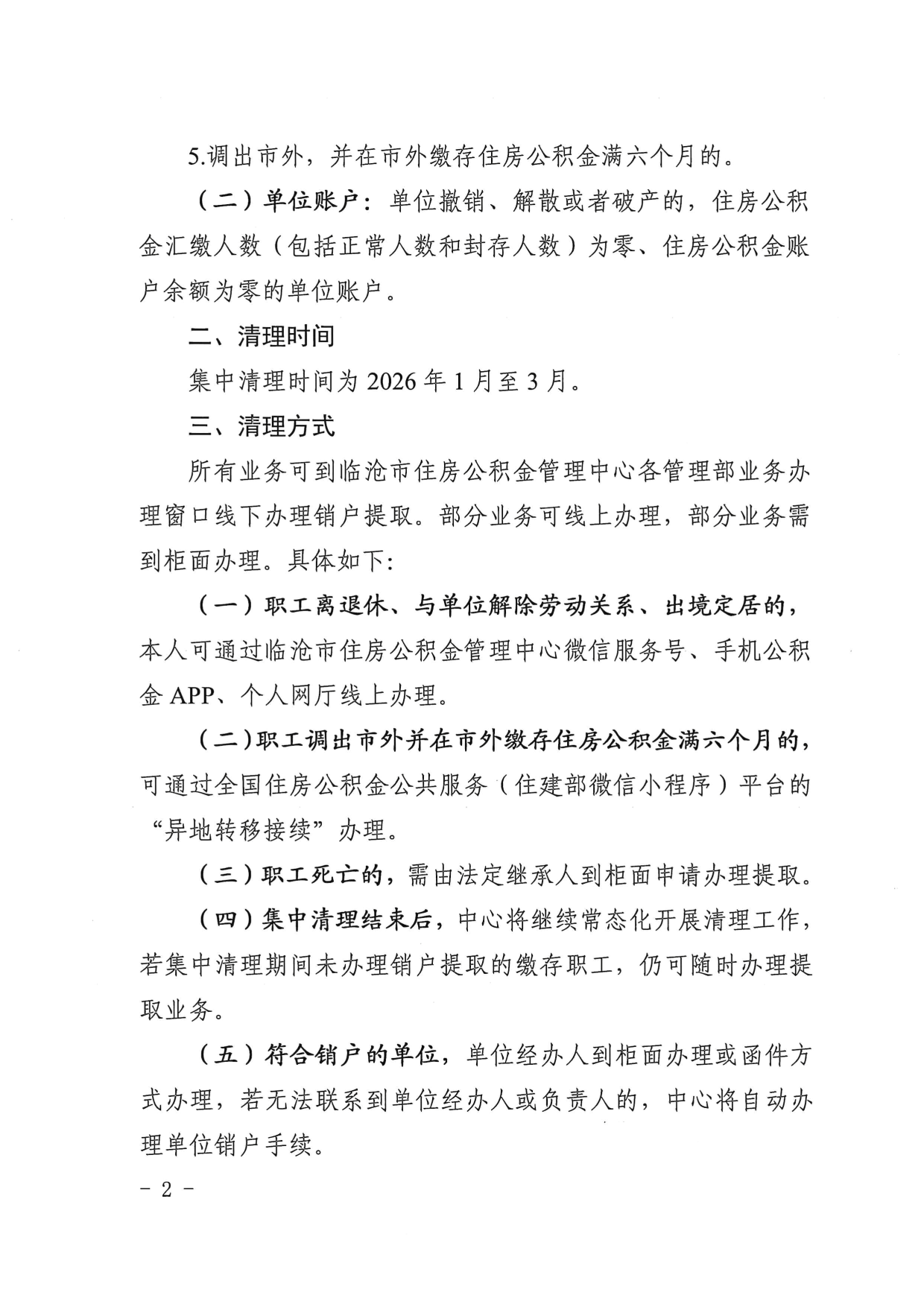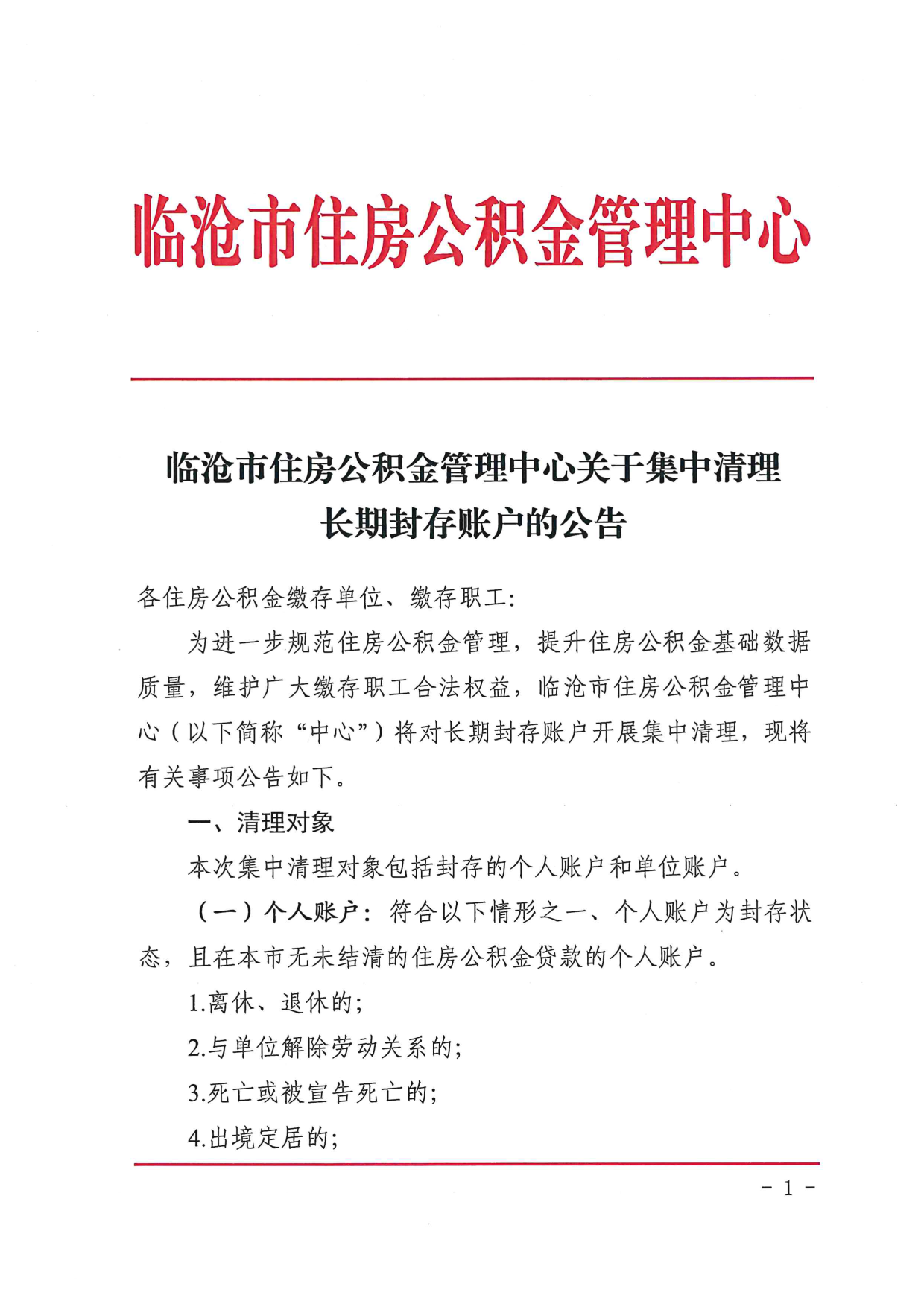 临沧市住房公积金管理中心关于集中清理长期封存账户的公告