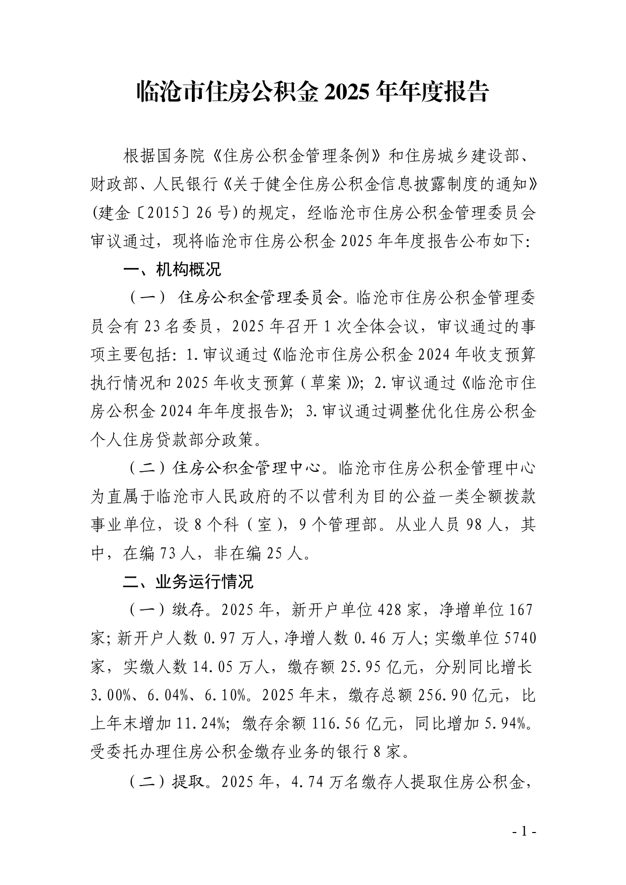 临沧市住房公积金2025年年度报告